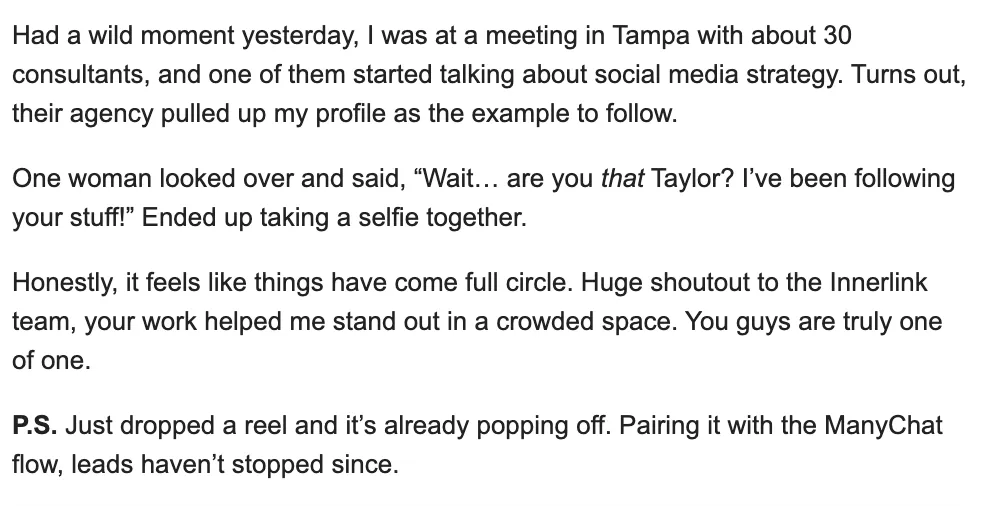 But in both cases, we built strong personal brands, 10xed our business, and have loyal followers that consist of our target customers.